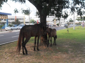 Hoje (15). Dia em que uma burra e seu filhote resolvem passar o dia pastando no canteiro central da Avenida Carlos Cunha, exatamente em frente ao Shopping São Luís.