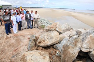 O problema de erosão na orla de São Luís começou a ser resolvido nesta sexta-feira (15), com o início da construção do espigão da Ponta d’Areia, obra orçada em R$ 12 milhões e que deve ser concluída em cerca de seis meses. A ordem de serviço foi assinada pelo secretário de Infraestrutura, Max Barros, em cerimônia com participação de secretários de Estado, deputados estaduais e moradores da área. A obra será construída nas proximidades do Memorial Bandeira Tribuzi. A estrutura do quebra-mar terá 572m de extensão, com largura que varia de 7m a 13m e altura de 4m a 14m. “Esta é uma obra muito importante, com múltiplas funções. A primeira é a contenção da erosão. Hoje, neste trecho, a rua já está só com meia pista para o trânsito porque o mar já tomou o restante. A tendência, se a obra de engenharia não fosse feita, é que essa erosão avançasse inclusive destruindo as moradias”, observou Max.