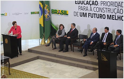 O presidente José Sarney participou nesta manhã, no salão nobre do Palácio do Planalto, da cerimônia de assinatura de compromisso para construção de novas creches, quadras esportivas cobertas e também doação de 30 mil bicicletas e capacetes escolares pelo programa Caminho da Escola. O investimento é de R$ 371,2 milhões, advindos do PAC2. No primeiro momento, serão construídas 454 quadras cobertas em escolas brasileiras e 138 unidades de educação infantil. O ministro da Educação Fernando Haddad prometeu que, até o fim do mandato de Dilma, serão construídas 10 mil quadras esportivas e 6 mil creches. Além do presidente do Senado, oito ministros acompanharam a presidente Dilma no anuncio dos novos programas de investimentos para educação básica e esportes.