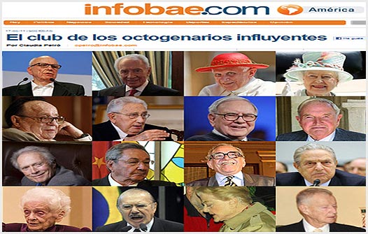 O site montou o clube de octogenários influentes a partir de pesquisa da ONU sobre o envelhecimento da população que projeta para 2050 um mundo com 400 milhões de idosos – quatro vezes mais que na primeira deste século. Hoje, segundo a pesquisa, o crescimento da população na faixa etária dos 80 anos acontece nos países desenvolvidos e nos emergentes, como Brasil. Além de viver mais, essa população vive melhor. E o exemplo são personagens mundialmente conhecidos que seguem ativos em suas profissões, empresas, cargos públicos e artes, com papel de destaque no mundo em que vivemos.