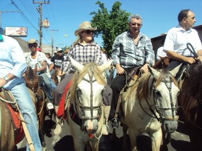 Dr. Pádua, acompanhado da esposa Marilda Albuquerque, recebe cumprimentos da população durante a 21° Cavalgada de Imperatriz