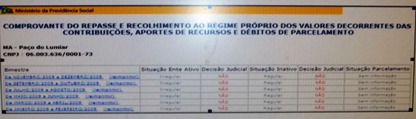 Finalizou a auditoria com a seguinte conclusão: “…, concluímos que o RPPS do Município de Paço do Lumiar – Ma encontra-se irregular no critério: ‘Caráter contributivo (repasse) – Decisão Administrativa’, exigido para a emissão do CRP – Certificado de Regularidade Previdenciária”.