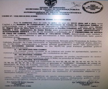 No dia 20 de julho de 2010, o Sr. Alexandre Santos Costa, ex-contador da Prefeitura Municipal de Paço do Lumiar, prestou declarações na 1ª Promotoria de Justiça de Paço do Lumiar, que podem ser sintetizadas da seguinte maneira: