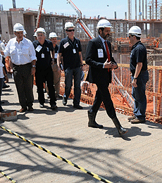 Ontem, uma comitiva da Federação Internacional de Futebol (Fifa) visitou as obras do Estádio Nacional de Brasília, o Mané Garrincha. O grupo, composto por cerca de 30 pessoas, foi formado por profissionais de diversas áreas que vieram à capital para analisar o andamento da construção para a Copa do Mundo de 2014. “Fizemos uma apresentação do projeto para eles, e agora essa visita é para que a comissão tire dúvidas sobre a obra e converse com os nossos especialistas”, esclareceu o governador do Distrito Federal (DF), Agnelo Queiroz.
