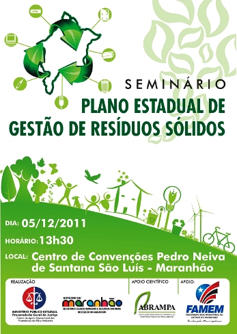 Com o objetivo de orientar prefeitos e promotores de Justiça sobre o assunto, a Secretaria de Meio Ambiente (Sema), o Ministério Público Estadual e a Federação dos Municípios – Famem promovem, no dia 5 de dezembro, seminário sobre o Plano Estadual de Gestão de Resíduos Sólidos. O evento acontece no Centro de Convenções Pedro Neiva de Santana,em São Luís, não havendo necessidade de inscrições prévias.