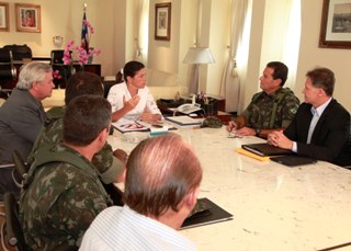 A governadora Roseana Sarney se reuniu com os comandos da SSP e do Exército Brasileiro, hoje, no Palácio dos Leões. No encontro, o governo reafirmou as ações que vem sendo desenvolvidas para a segurança da população, agradeceu o trabalho que vem sendo realizado por policiais militares e bombeiros que não aderiram à paralisação e a união de forças para garantir a tranqüilidade no estado.