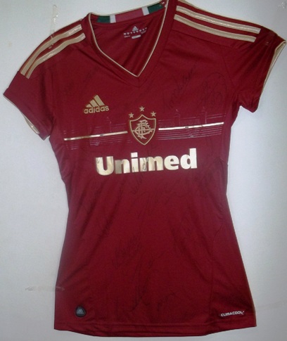 Agora pouco recebi em minha residência Maíra Sá, filha do meu amigo Décio Sá. Ela veio me mostrar o presente que recebeu de Dona Tetê, tricolor de coração, assim como eu e o seu pai, uma camisa oficial, vinda direto das Laranjeiras, autografada pelos craques do meu timão. Obrigado Dona Tetê, a pedir essa homenagem ao Décio…