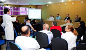 O secretário de Estado da Saúde (SES), Ricardo Murad, reuniu-se nesta sexta-feira (27), no auditório do Hospital de Alta Complexidade Carlos Macieira, com o promotor da Saúde, Herberth Figueiredo, a secretária de Assuntos Institucionais do Ministério Público, Fabíola Fernandes Ferreira, e diretores das unidades estaduais de saúde para discutir a realidade da saúde pública do Estado.