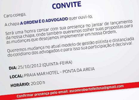 Convite Especial: Jantar de Lançamento Campanha Roberto Feitosa OAB 2012.