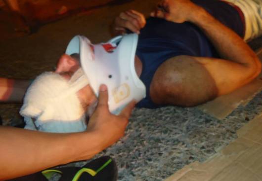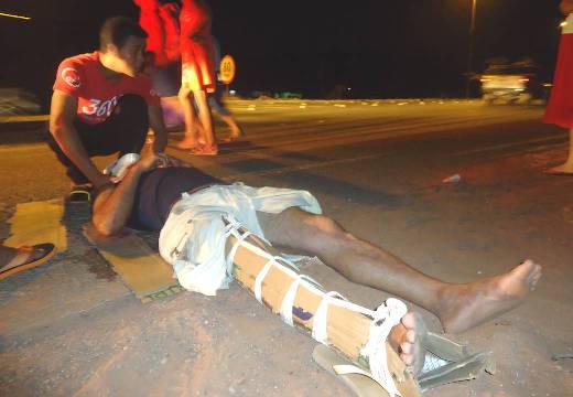 Augusto Cavalcante que fora atropelado por uma moto, o condutor do veículo evadiu-se do local deixando o pedestre com diversas fraturas expostas, inclusive, na perna direita.
