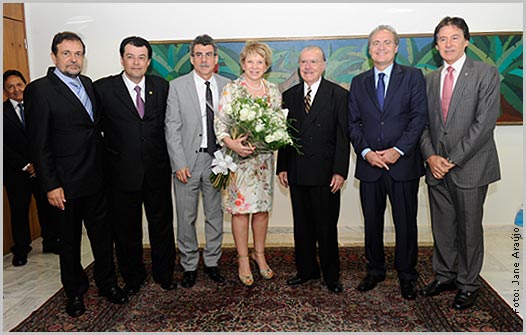 O Presidente da República em exercício, José Sarney, recebe a Ministra Marta Suplicy e os líderes do Senado Federal.