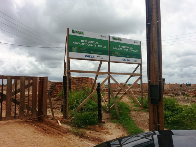 Ontem (29), estive em Zé Doca e algumas pessoas pediram para que eu fosse ver o terreno onde estão sendo construidas 1.250 casas, sendo parte pela Viluma Engenharia e Contrução Ltda e a outra Angra.