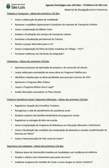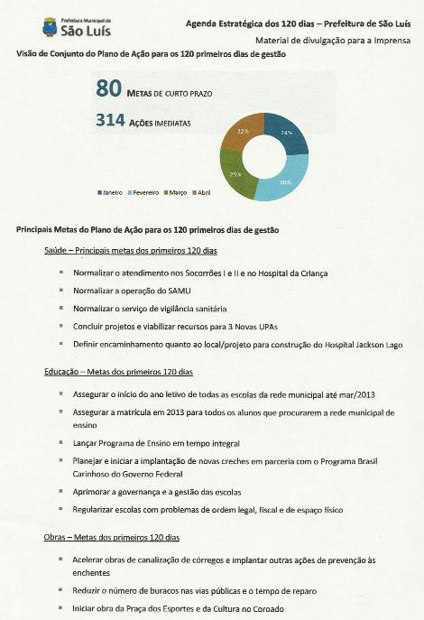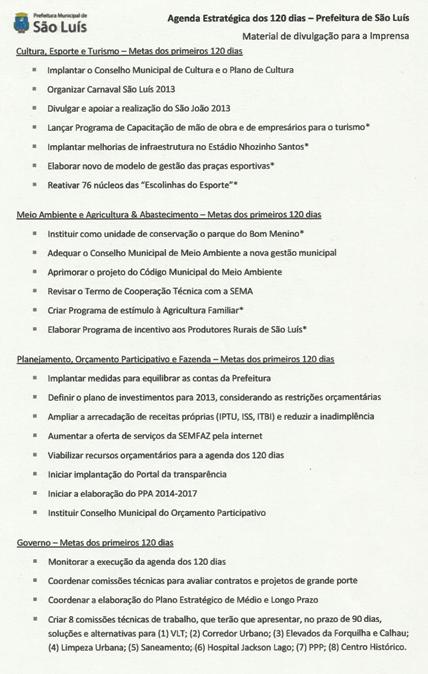 Mesmo não citado nada sobre essa Agenda Estratégica dos 120 dias de gestão, em sua coletiva e colocando isso em sua matéria, aproveito para divulgá-las, cujo objetivo é que o próprio povo possa mensurar e tirar suas conclusões.