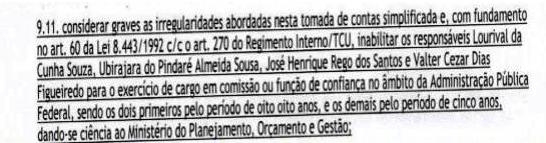 O recorte acima é da sentença definitiva de condenação do deputado estadual Bira do Pindaré, dada pelo Tribunal de Contas da União, o TCU.
