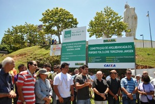 O prefeito Gil Cutrim (PMDB) autorizou neste último fim de semana o início da obra de construção da arquibancada do Parque Municipal do Folclore Therezinha Jansen, importante espaço cultural situado na orla marítima da Sede de São José de Ribamar. A solenidade de assinatura da ordem de serviço contou com as presenças do vice-prefeito Eudes Sampaio (PT do B); dos vereadores Valdo Coelho, César Vieira, Marlene Monroe, Antônio Augusto, Valberlena, Nonato Lima, Jô Viana e Djalma; além de lideranças políticas e comunitárias da cidade. O Parque Municipal do Folclore recebe diversas manifestações culturais que fazem parte do calendário anual de festas do município. A construção da arquibancada oferecerá aos ribamarenses e visitantes maior infraestrutura e comodidade, além de revitalizar, ainda mais, o espaço cultural localizado em um dos mais belos cartões postais da cidade. A obra está sendo custeada com recursos federais e municipais e será concluída nos próximos meses. “Em uma terceira etapa iremos autorizar a implantação de um palco fixo, dotado de toda a infraestrutura necessária, no Parque com o objetivo de torná-lo cada vez mais preparado para receber festas tradicionais como o Lava-Pratos e Lava-Bois, por exemplo”, afirmou Gil Cutrim.