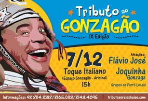 Serão mais de dez horas de forró autêntico. O Tributo ao Rei do Baião deste ano trará muitas atrações para garantir tanto tempo com música de qualidade. No ponto alto da festa, subirão ao palco Joquinha Gonzaga – sobrinho de Gonzagão – e Flávio José, cantor de clássicos como “Espumas ao Vento” e “Tareco e Mariola”. Músicos maranhenses consagrados como Roberto Ricci e Raimundinho do Forró também estarão presentes, sempre interpretando Luiz Gonzaga. Segundo membros da comissão organizadora, a homenagem para o Rei do Baião já é a segunda maior do país, ficando atrás apenas do tributo realizado em Exu (PE), cidade natal do maior nordestino de todos os tempos. Assim como em 2011, a casa que receberá o evento é o Toque Italiano, que se transformará no Espaço Gonzagão, em plena Rua do Aririzal (Turu). O evento começa às 15h, e só termina pela madrugada. Os ingressos já estão à venda no Toque Italiano (Rua do Aririzal – Turu), no Restaurante Matutu’s (Av. Daniel de La Touche – Cohama), na Galeria de Santaninha (Praça Deodoro – Centro), no Restaurante Mandacaru (Araçagy), no Restaurante Panela de Minas (Av. São Luís Rei de França – Turu), e no Comercial São Patrício (em frente a Igreja da Sé, Praça Benedito Leite). Preço: R$ 30,00 (apenas na venda antecipada). No dia do evento, o ingresso vendido na bilheteria será pelo valor de R$ 40,00.