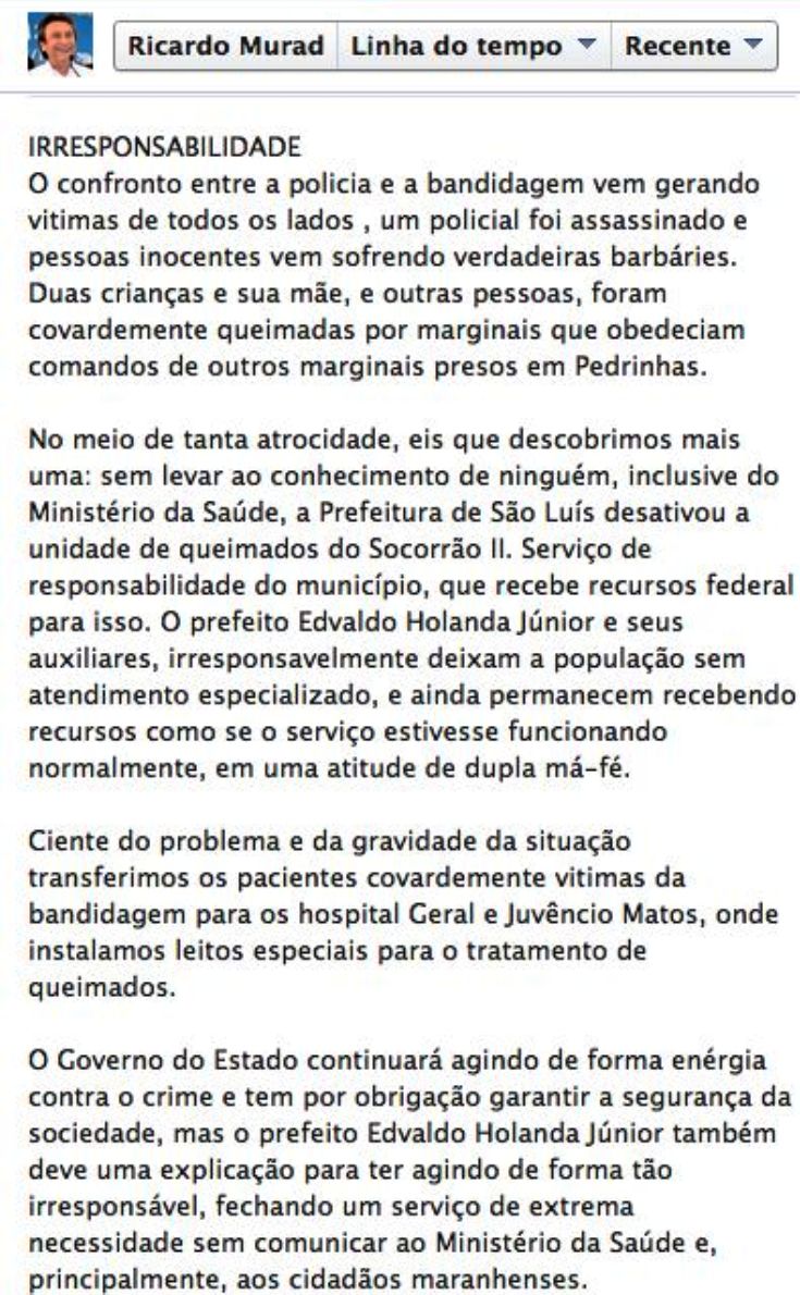 Encontrar culpados? Ora bolas!!! Os últimos governadores desse estado, incluindo aí os de oposição que governaram o Maranhão por sete longos anos, e os diversos secretários de segurança pública, todos são culpados sim!!!