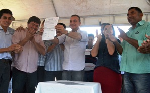 O secretário de Estado da Infraestrutura, Luís Fernando Silva, assinou, nesta quarta-feira (22), ordem de serviço para a pavimentação com asfalto da MA 138, que liga os municípios de São Pedro dos Crentes a Fortaleza dos Nogueiras. Presentes, os deputados estaduais Léo Cunha, Rigo Teles e Stênio Resende, além do prefeito de Sitio Novo, João Piquiá, e de Estreito, Cícero Moraes. Ao todo, serão investidos mais R$ 40 milhões na pavimentação com asfalto de 51 quilômetros, o que beneficiará a população das duas cidades e moradores das regiões circunvizinhas. O investimento faz parte do Programa Viva Maranhão que tem por objetivo ligar todas as sedes dos municípios por asfalto. Somente em 2013, por meio do programa, foi investido mais de mil quilômetros de asfalto em rodovias e na recuperação de mais de 2 mil quilômetros de rodovias. Durante assinatura, o secretário Luis Fernando destacou os investimentos do Governo do Estado em todo o Maranhão. “A pavimentação desta estrada, ligando São Pedro dos Crentes a Fortaleza dos Nogueiras, é um resgate da dignidade; é a prova do respeito do Governo do Estado pelas duas cidades e pelos moradores da região. O que nos estamos fazendo pelo Maranhão é ligar todas as sedes municipais por asfalto. Portanto, a lama no inverno e poeira no verão serão coisas do passado”.