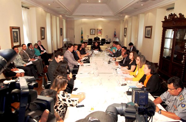 Participaram da reunião, os secretários de Estado Aluísio Mendes (Segurança Pública), Luiza Oliveira (Direitos Humanos, Assistência Social e Cidadania), Sebastião Uchôa (Justiça e Administração Penitenciária), Ricardo Murad (Saúde) e Catharina Bacelar (Mulher). Também presentes a procuradora Geral de Justiça, Regina Rocha; o deputado estadual Roberto Costa; o defensor geral do Estado, Aldy Mello Filho; a delegada Geral da Polícia Civil, Cristina Meneses; o comandante da PMMA, coronel Aldimar Zanoni Porto; o juiz Fernando Mendonça, da 2ª Vara de Execução Penal, representando o coordenador da Unidade de Monitoramento e Fiscalização do Sistema Carcerário, desembargador Froz Sobrinho; entre outras autoridades federais e do estado.