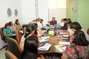 A governadora Roseana Sarney reuniu-se, na tarde desta quarta-feira (22), no Palácio dos Leões, com defensores públicos maranhenses e de outros estados e também com representantes do Ministério da Justiça, Poder Judiciário e Ministério Público. A reunião tratou sobre o Mutirão Carcerário Presencial, que ocorrerá na Penitenciária de Pedrinhas a partir do dia 3 de fevereiro e terá duração de 15 dias, reunindo 55 defensores públicos, sendo 21 do Maranhão e 34 de outros estados e também da União. Do encontro, participaram, entre outras autoridades, o presidente do Colégio Nacional de Defensores Públicos Gerais, Nilton Arnecke; o secretário de Reforma do Judiciário (Ministério da Justiça), Flávio Caetano; o defensor geral do Estado do Maranhão, Aldy Mello Filho; a corregedora-geral do Tribunal de Justiça, Nelma Sarney, e a procuradora-geral de Justiça, Regina Rocha.