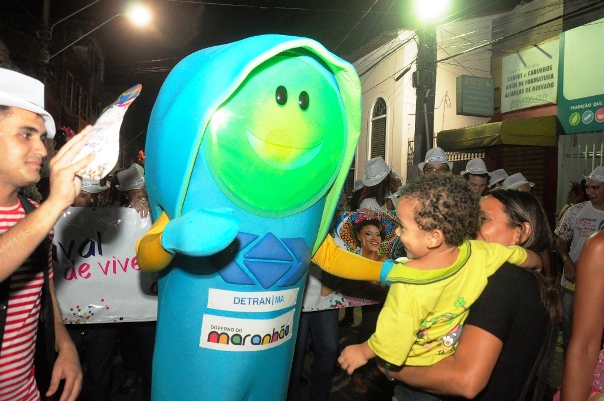 Uma das atrações do Blocão da Vida é o mascote do Detran-MA “Sinalito”, que esteve durante todo o percurso do bloco levando alegria aos foliões e principalmente entre as crianças.