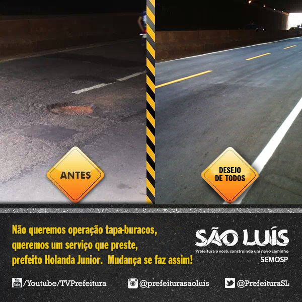 Prefeito Holanda Junior, como eu já disse aqui: essa forma de tampa buraco usando a urgência e emergência para fugir de um processo licitatório é a forma mais covarde de desviar o dinheiro do contribuinte. Ora bolas!!! Nesses mais de 25 anos que essa prática vem sendo usada em São Luís por todos os prefeitos, pois já gastaram indevidamente bilhões e bilhões para tapar os buracos com borra de asfalto, quando daria para substituir toda malha asfaltica da capital…