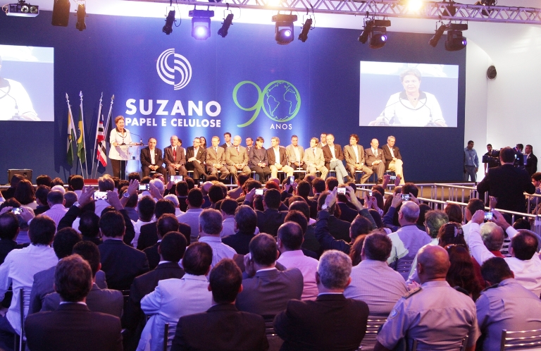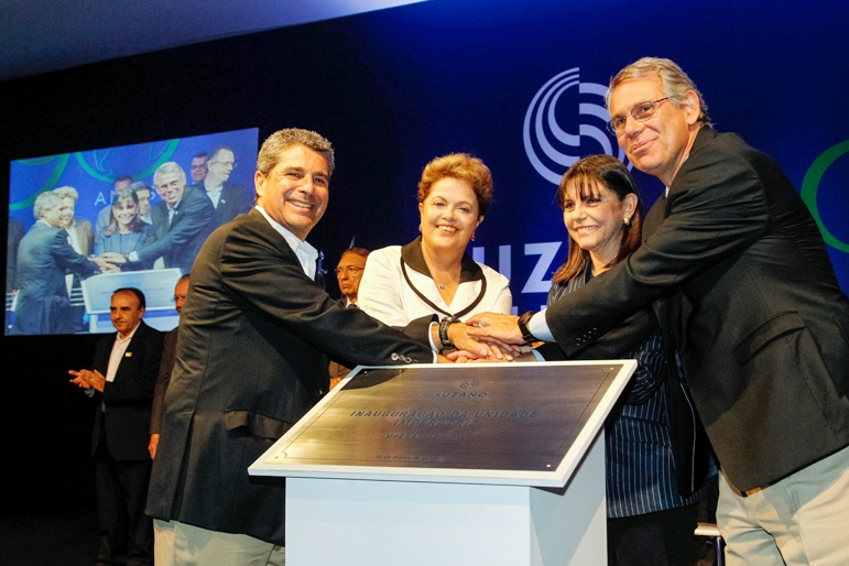 A governadora Roseana Sarney; a presidenta da República, Dilma Rousseff; o presidente do Conselho de Administração da Suzano, Davi Feffer; e o presidente da Suzano Papel e Celulose, Walter Schalka, inauguraram a fábrica Suzano Papel e Celulose, em Imperatriz, em solenidade ocorrida na tarde desta quinta-feira (20), na sede da empresa. O empreendimento de R$ 6 bilhões é um dos maiores e mais modernos do mundo.
