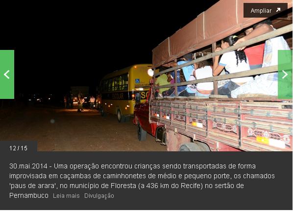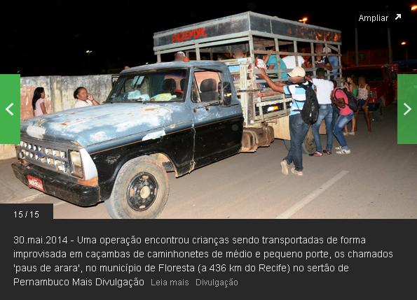 Uma operação encontrou crianças sendo transportadas de forma improvisada em caçambas de caminhonetes de médio e pequeno porte, os chamados ‘paus de arara’, no município de Floresta (a 436 km do Recife) no sertão de Pernambuco Divulgação