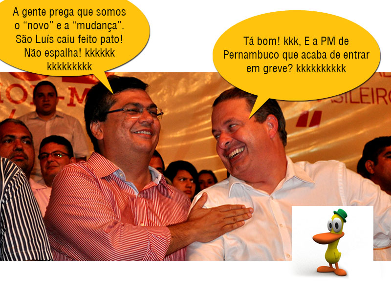 Flávio Dino, você não disse que era a favor da PEC 300 e que se não desse em nada lá na Câmara Federal tornaria tudo aqui na Assembléia uma maravilha!!! Fala para o Eduardo Campos falar com seu cumpicha para fazer o que você prometeu fazer aqui!!! Agora, o Governo de PE vai pedir na Justiça ilegalidade de movimento da PM e o Secretário da Casa Civil avalia acionar Força Nacional para garantir ordem, pois o Grupo de policiais e bombeiros exigem reajuste de 50% no salário-base. KKKKKKKKKKK