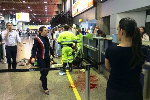 Homem é esfaqueado no Aeroporto de Guarulhos. Um homem foi esfaqueado em frente a um balcão de check-in no Aeroporto de Guarulhos, na Grande São Paulo.