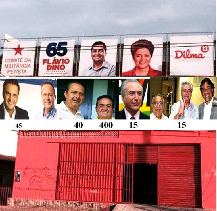 Obs.: Na fachada está a foto, o nome e o número (propaganda) do candidato ao governo do Estado do Maranhão Flávio Dino, assim como da presidenta Dilma, logo é obrigatório essa exigência do Art. 8º senhores juízes!!!