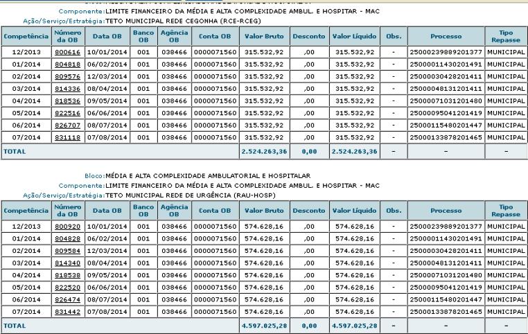 Por outro lado, somente o município de São Luís recebeu do Ministério da Saúde – fundo a fundo – entre o mês de dezembro de 2013 ao mês de julho de 2014, senhor Flávio Dino, milhões e milhões, conforme demonstrativo abaixo apenas das rubricas em que ele deveria atender a contento a alta complexidade, coisa que não cumpre!!!