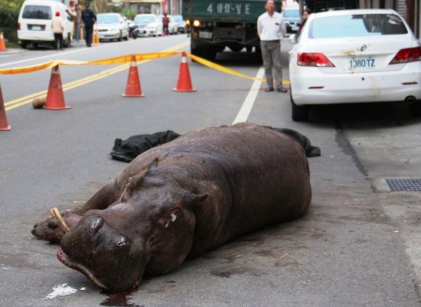O hipopótamo ficou sofrendo por horas na rua e as autoridades locais informaram que o imbecil que causou toda essa maldade com o hipopótamo será apenas multado por violar as leis de proteção aos animais.