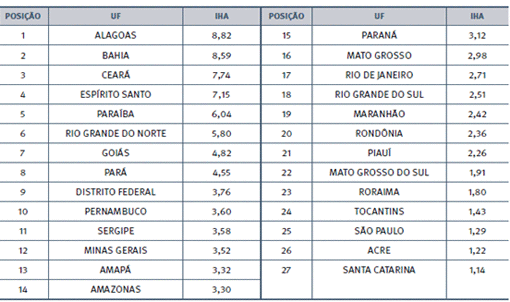 No Maranhão dos dados do IHA foram os seguintes: