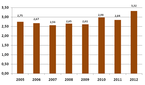 A partir do IHA, podemos concluir que, em 2012, a mortalidade por homicídio na população adolescente entre 12 e 18 anos foi a mais alta dos últimos 8 anos.
