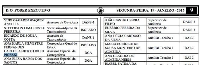 E não é que no mesmo Diário do dia 19/01 o Secretario de Transparência, que foi colocado nesse cargo para evitar esse tipo de coisas acontecesse (e ele próprio diz que não tem no novo Maranhão) nomeou para o cargo de assessor especial da corregedoria (auxiliar da mulher de Zé Reinaldo) nada menos que outro filho do senhor Benedito Bayma Piorki, o senhor Carlos Alberto Ricci Piorski.