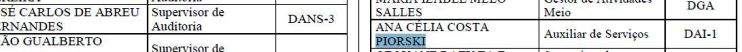 No Diário do dia 19/01 eis que encontrei a nomeação da senhora Ana Célia Costa Piorski para a Secretaria de Planejamento e Orçamento. Ela é: filha do senhor Benedito Bayma Piorki.