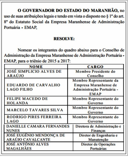 A publicação em anexo prova definitivamente isso. Nada menos que ele e o primo Eduardo Lago nomeado para o Conselho de administração da EMAP.