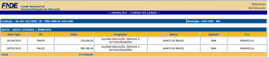 É preciso que a população ludovicense tome conhecimento que o FNDE nesse ano de 2015 repassou no final de janeiro para diversos estados, entre eles o Maranhão, R$ 2,2 bilhões de complementação ao Fundeb.