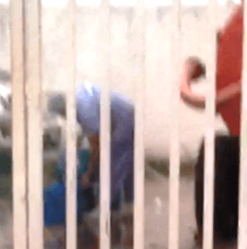 De acordo com o denunciante, este trabalhador que aparece na foto vestido de azul é funcionário da Litucera e seu serviço no momento do clique era o de encher os garrafões com água vida da fazenda do empresário para ser usada na cozinha e para consumo humano.