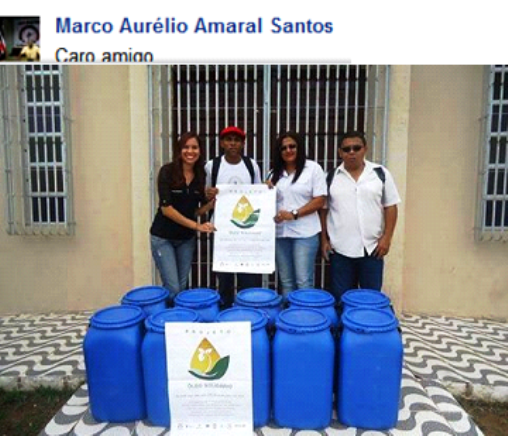 O projeto Óleo Solidário, hoje pela manhã aconteceu a entrega das bombonas de coleta a Gilberto Dos Anjos e Silvelene Evangelista coordenadores do conselho paroquial e a Tayra Duarte secretaria paroquial.
