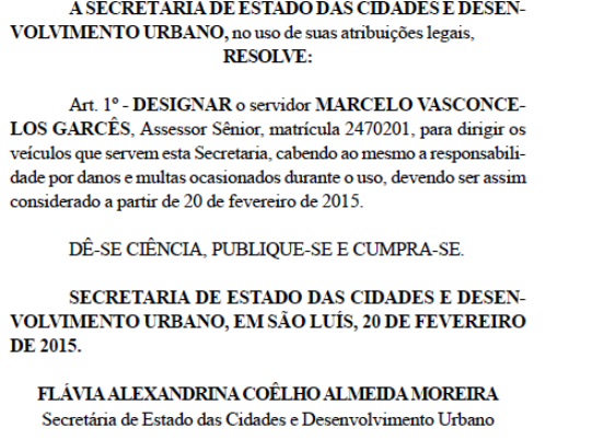 No dia 27/02/2015, publiquei “Senhor governador Flávio Dino, V. Exª tem certeza que sua Secretaria da Transparência é funcional?”, onde falei: Vossa Excelência tem acompanhado as edições do Diário Oficial do Estado, principalmente as do Executivo? Não vou entrar aqui ainda nas edições de “Terceiros”… Caso V. Exª solicitasse a um pequeno grupo de especialistas em gestão pública que desse uma olhadinha de leve nessas publicações e depois lhe passe o que viram… Vou lhe fazer um questionamento, pois V. Exª é um ex-magistrado. Um cidadão nomeado como Assessor Sênior pode ser designado para ser condutor (motorista) dos veículos de uma Secretaria, isso sem que tenha passado ao menos por um teste de direção e de código de trânsito, além de não comprovar a classificação de sua habilitação? Não seria isso um desvio de função, senhor governador? Acredito que a sua auxiliar teria designado o referido servido para exercer a chefia de transporte da Secretaria. Diante disso, atrevo-me a sugerir que a mesma ratifique a referida Portaria, caso contrário, isso fica caracterizado como desvio de função.