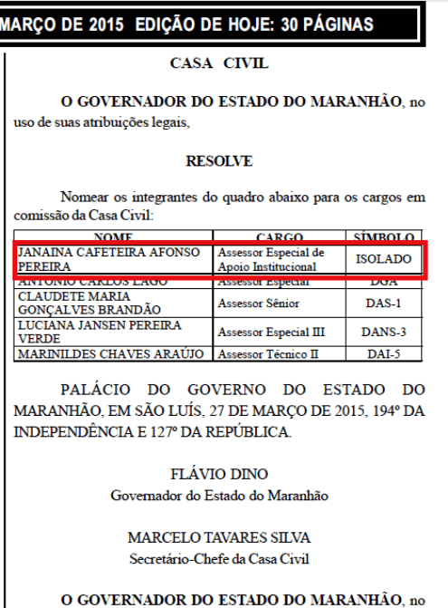 Caramba!!! Pois não é que ela foi nomeada também no governo Flávio Dino?