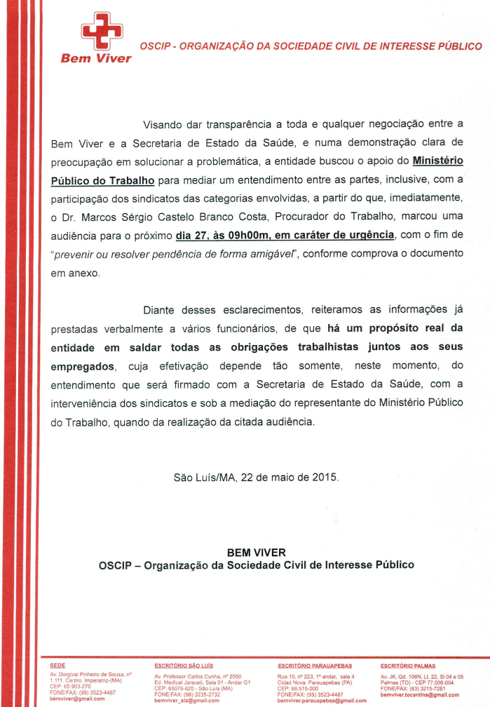 Diante dos rumores causados pela Secretaria de Saúde do Estado do Maranhão, a Bem Viver esclarece: