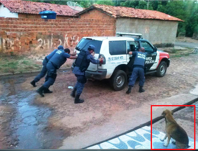Após a desolação dos munícipes e até do cachorro que assistia a luta dos PMs, no município de Coelho Neto, com uma viatura para que pudessem partir na captura de bandidos, um morador da localidade que ocorreu a luta desabafou: