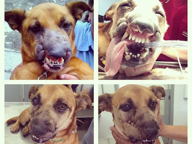 Um cachorro com o rosto completamente deformado passou por uma transformação e teve a face reconstruída em Santos, no litoral de São Paulo. A dona do cão, que o encontrou dentro de uma tubulação de esgoto, acredita que ele havia sido vítima de violência e abandonado em seguida por seus antigos donos.