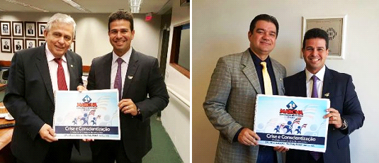 Deputados federais e senadores que compõem a Bancada Maranhense em Brasília garantiram, nesta quinta-feira (17), apoio e participação na I Marcha Municipalista do Maranhão, evento promovido pela Federação dos Municípios do Estado do Maranhão e que será realizado nos dias 29 e 30 de outubro no Rio Poty Hotel, em São Luís. O projeto da Marcha foi apresentado pelo presidente da Famem, prefeito Gil Cutrim (São José de Ribamar), durante reuniões de trabalho no período da manhã na capital federal. Importante ressaltar que as inscrições para o evento podem ser feitas no www.famem.org.br. No endereço eletrônico também estão disponíveis outras informações importantes, tais como apresentação, programação, oficinas temáticas e notícias. Gil Cutrim esteve com o coordenador da Bancada, deputado Pedro Fernandes (PTB); e vários outros integrantes, dentre eles os deputados André Fufuca (PEN), Waldir Maranhão (PP), Hildo Rocha (PMDB), Júnior Marreca (PEN) – estes dois últimos já foram presidentes da Federação – além do senador Roberto Rocha (PSB). Todos foram unânimes em prestar apoio ao evento, garantir participação e destacar o seu papel de instrumento fortalecedor do municipalismo no Estado. “Será um fórum adequado de debates no qual estarão presentes políticos e representantes da sociedade. Todos juntos, unidos, discutindo e buscando soluções para a problemática de crise financeira vivida, hoje, pelas cidades maranhenses e do Brasil”, avaliou Pedro Fernandes. Júnior Marreca destacou as plenárias nas quais as bancadas de deputados estaduais e federais discutirão, diretamente com os gestores públicos, as demandas municipais. “Além disso, iremos tratar de projetos de interesse das cidades e de suas populações”, disse.