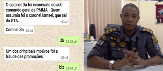O mesmo grupo de militares que me informaram o corte de 30% do orçamento da PMMA e o parcelamento dos vencimentos dos policiais militares, conforme matéria “Ouçam ao vídeo! Aja insegurança! Dino cortará 30% do orçamento da PMMA e parcelar o salário dos PMs?”, publicada hoje (17), informaram-me, em conversa no WhatsApp, que a exoneração do coronel Sá se deu pelo fato das fraudes nas promoções concedidas.