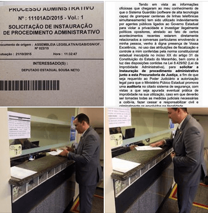 O Deputado Sousa Neto ingressou, hoje (22), na Procuradoria Geral de Justiça, com um pedido de auditoria para os supostos grampos ilegais, cujas responsabilidades o deputado disse ser do governador Flávio Dino e dos secretários Márcio Jerry e Jefferson Portela.