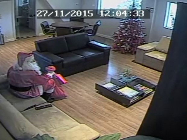 O papai noel chegou pela lateral do hangar. Ele sabia que, se tivesse entrado pela porta principal, seria gravado de frente pelas câmeras. Funcionários dizem que ele não contava que teria que andar pelo prédio, passar por outras câmeras e esperar meia hora até o momento de entrar no helicóptero.
